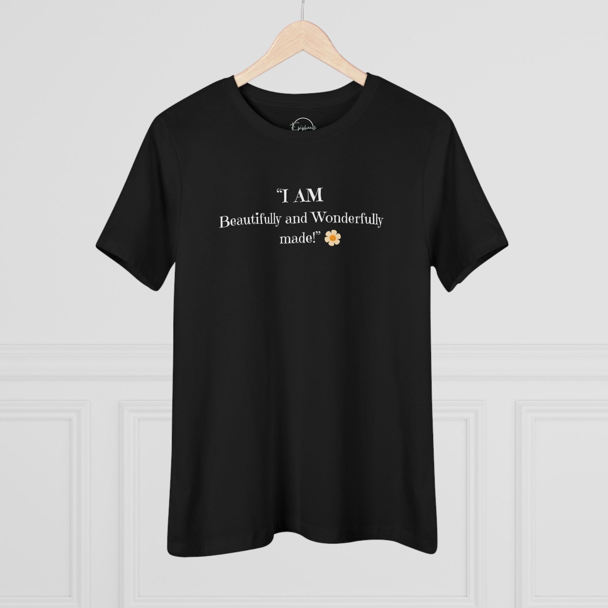 Embrace comfort and style with this Women's Cotton Tee, a perfect addition to your casual wardrobe. The uplifting message, 'I am Beautifully and Wonderfully made,' radiates positivity and self-love. Ideal for everyday wear or special occasions, it seamlessly fits into various settings—from a cozy day at home to outings with friends. This tee is designed for anyone who appreciates comfort, quality, and a bit of inspiration. It’s a great gift for friends or family during holidays, birthdays, or just because. Celebrate those who uplift and empower others with this stylish statement piece.